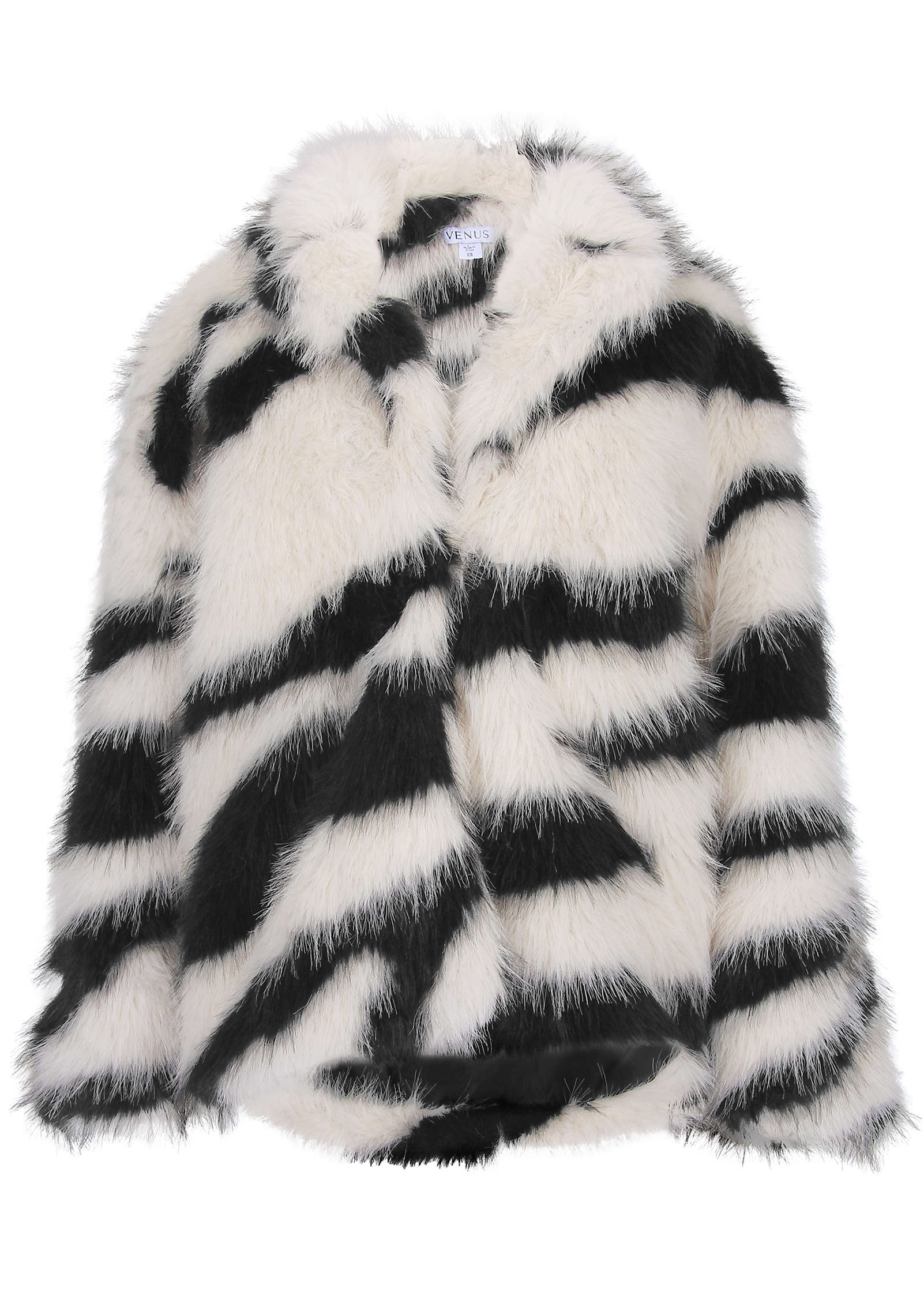 Zebra Print Faux Fur Coat - White Multi