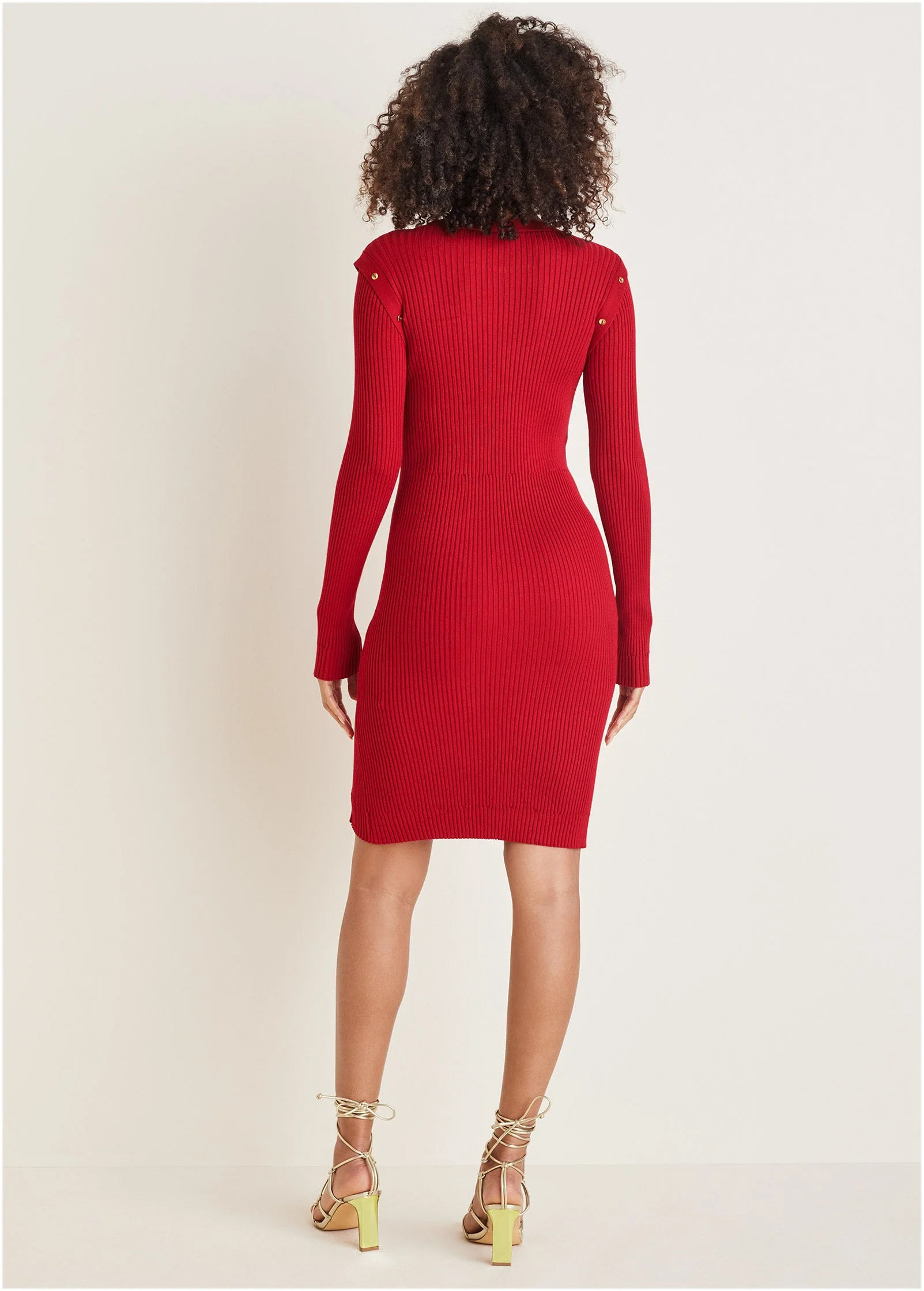 -70%Button Detail Sweater Dress - Equestrian Red—